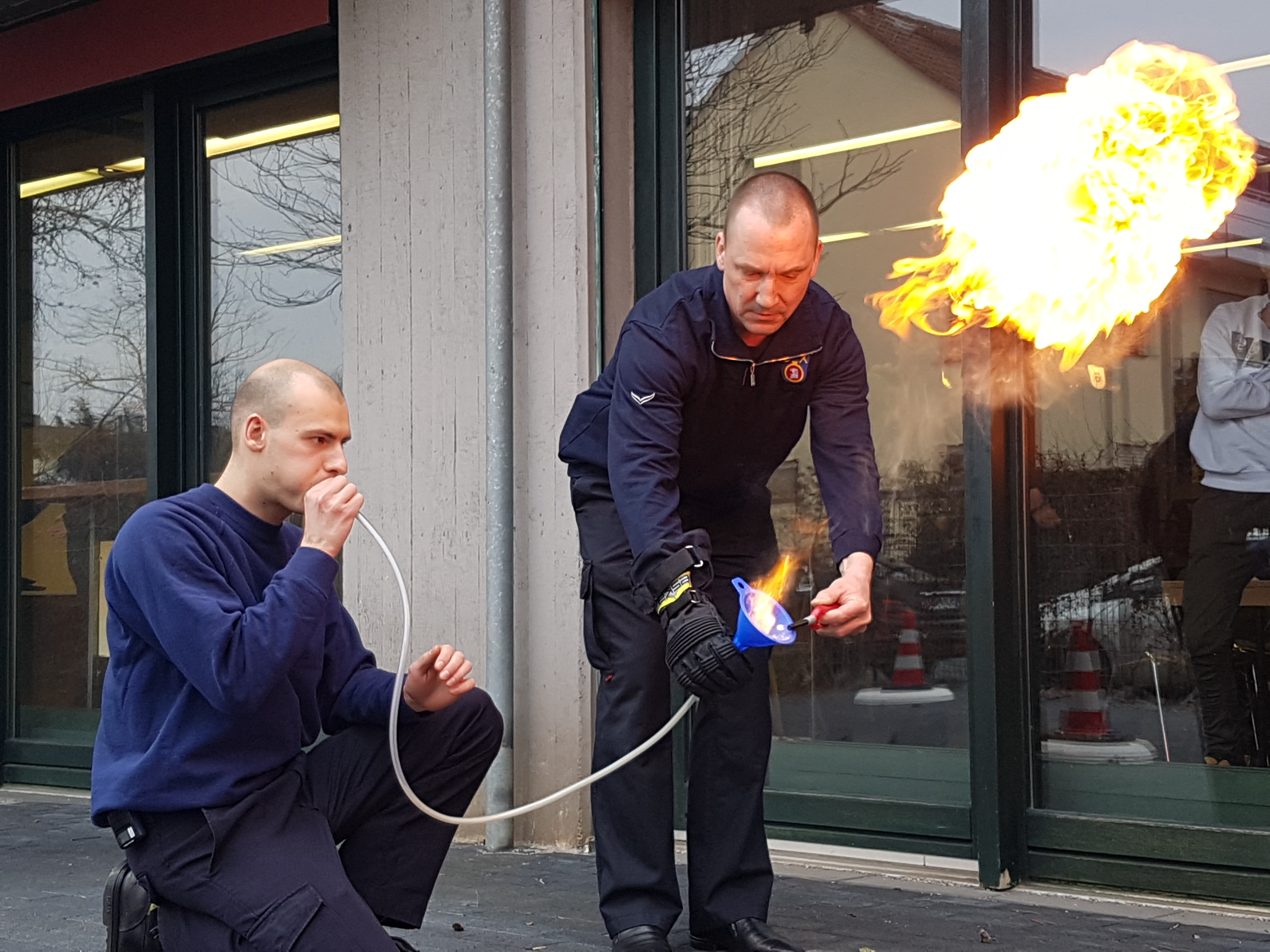 Die ersten eineinhalb Stunden wurden uns Versuche zum Thema Brände von einem Berufsfeuerwehrmann vorgeführt: