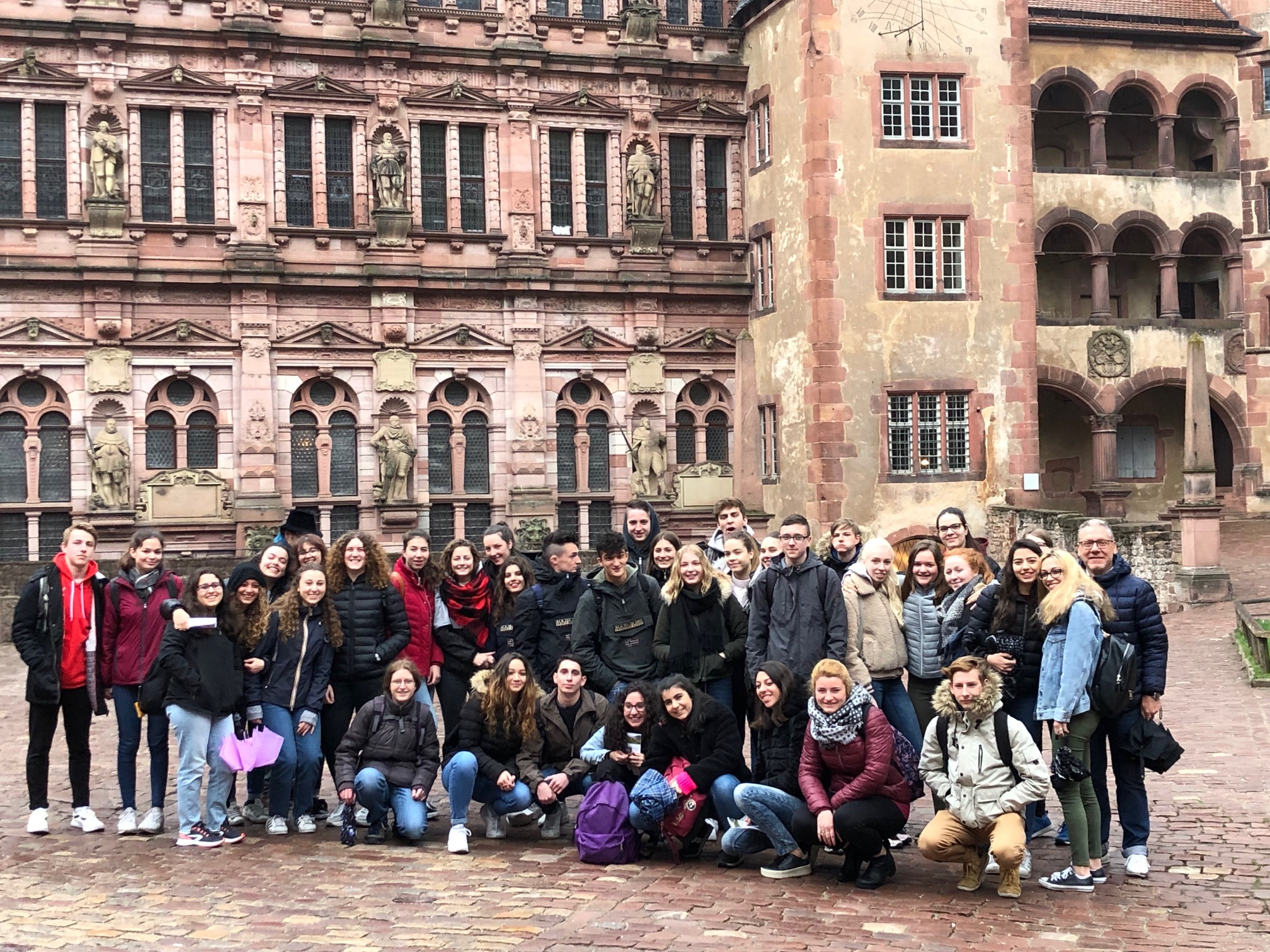 Donnerstags steuerten wir ein etwas weiter entferntes Ziel an. Knapp eine Stunde mussten wir mit einem Reisebus über die Autobahn fahren, um unser Ziel zu erreichen. Ziel war Heidelberg. In der Stadt angekommen, haben wir uns zu Fuß auf den Weg zum Schloss gemacht. Bevor wir eine Führung durch das Schloss bekamen (wieder auf Italienisch und Deutsch), hatten wir etwas Freizeit, um uns schon einmal ein bisschen das Schloss, das Fass und das Apothekenmuseum anzugucken. Nach der anschließenen Führung ging es dann wieder zurück in die Altstadt von Heidelberg, in welcher wir Freizeit hatten, bis es dann wieder nach Hause ging.