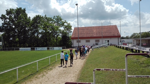 Am 29.05. war es dann schließlich soweit. Die Schülerinnen und Schüler hatten ihre „Hausaufgaben“ gemacht und zahlreiche Sponsoren motiviert, von denen Einzelne auch direkt beim Lauf zuschauten. Bei idealem Laufwetter starteten die Sportler in ihre 800m langen Runden und absolvierten ob der großen Motivation gemeinsam die eindrucksvolle Zahl von 171 Durchgängen, was einer gemeinsamen Laufleistung von mehr als drei Marathonstrecken entspricht! Weder die Klasse noch die Lehrkraft – und vermutlich auch nicht der ein oder andere Sponsor ???? – hatten mit einer solch beachtlichen Leistung gerechnet, sodass alle Beteiligten am Ende des Tages unheimlich stolz den Heimweg antraten.